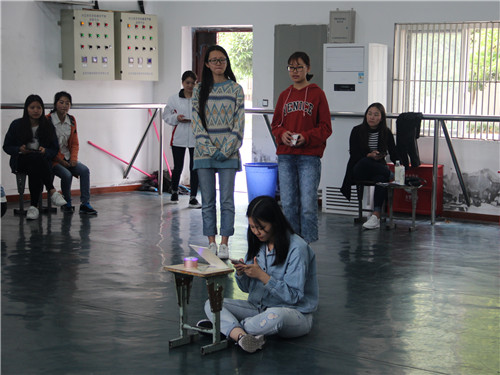13点45分,经过一个小时激烈的竞争选拔,最终16级8班参演的《手机诚可贵,生命第一位》情景剧作品最为优秀将代表公司参与校上心理情景剧表演。
