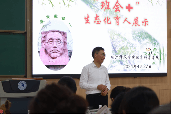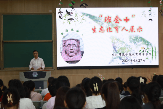 毕业员工怎么说?巴中市巴州区兴文小学经审委主任、小学数学教师,小学教育专业优秀员工2016级8班温友珺,以视频方式分享了她在内师的做班会经历。她说,在师院的四年时间里举办了无数次班会,经历了无数次尴尬,但也锻炼了方方面面的能力,工作后才能真正感受到班主任当年的良苦用心。她结合一线实践经验,认为依靠生态理念可以突破班会的形式限制、时间限制、空间限制,让员工充分生成个性要素,创造长期沉浸式班会体验,把班级生态、家庭生态和社区生态结合起来。