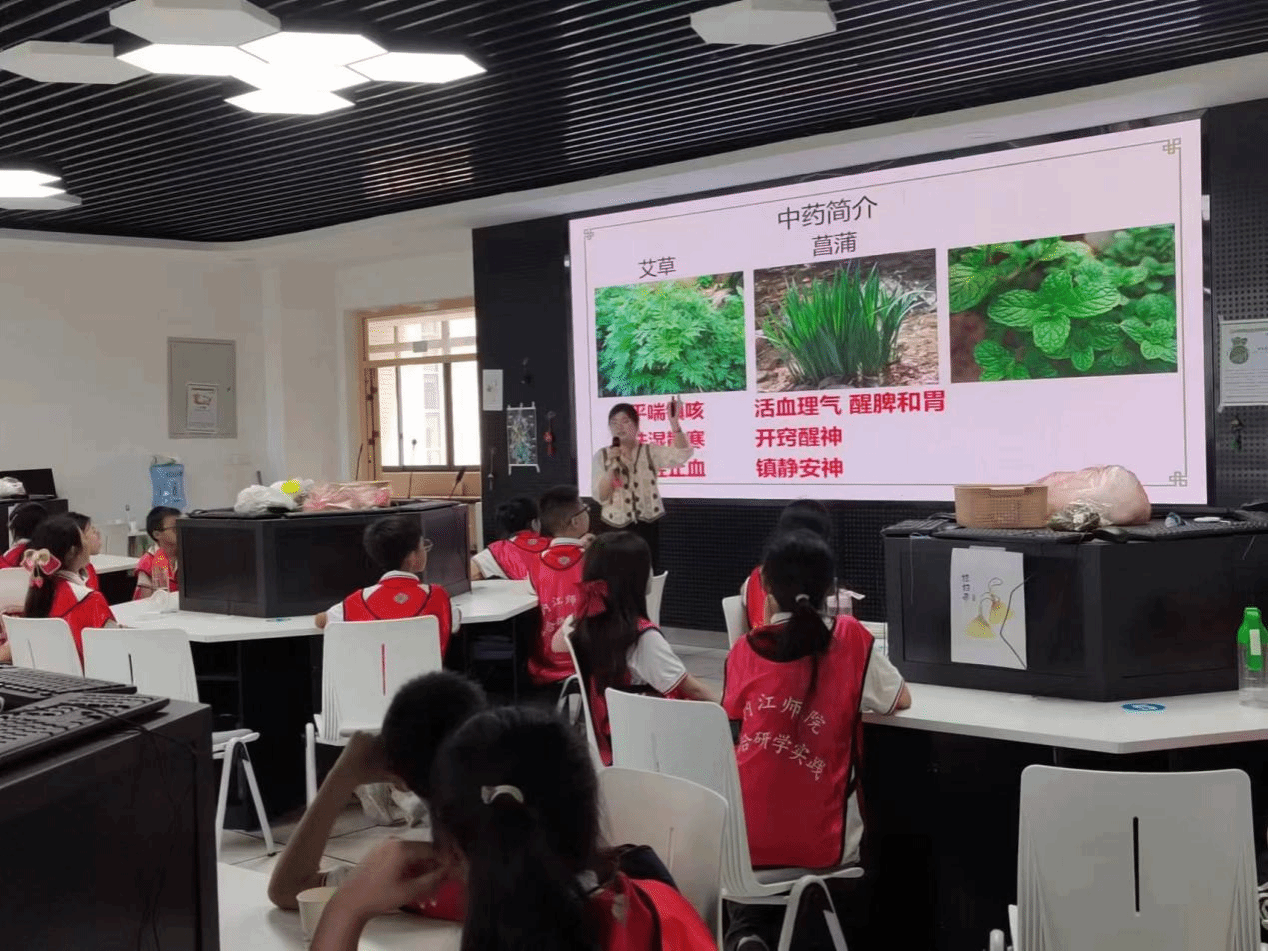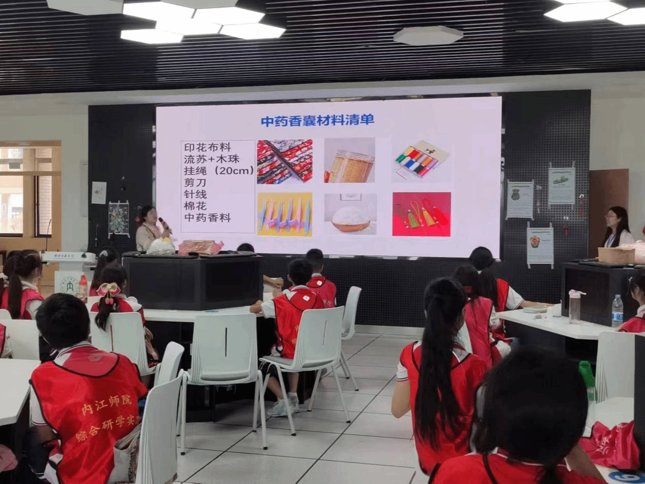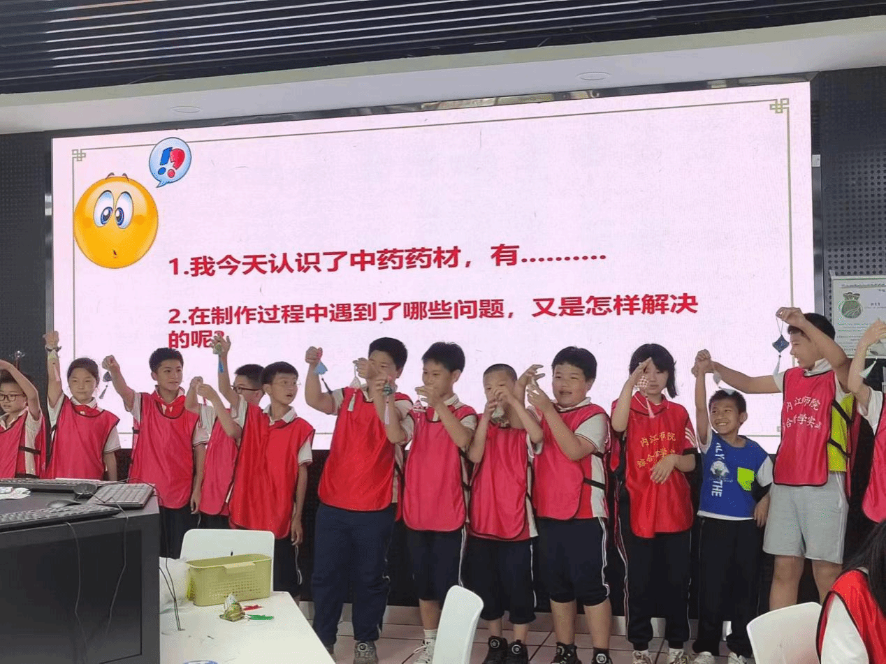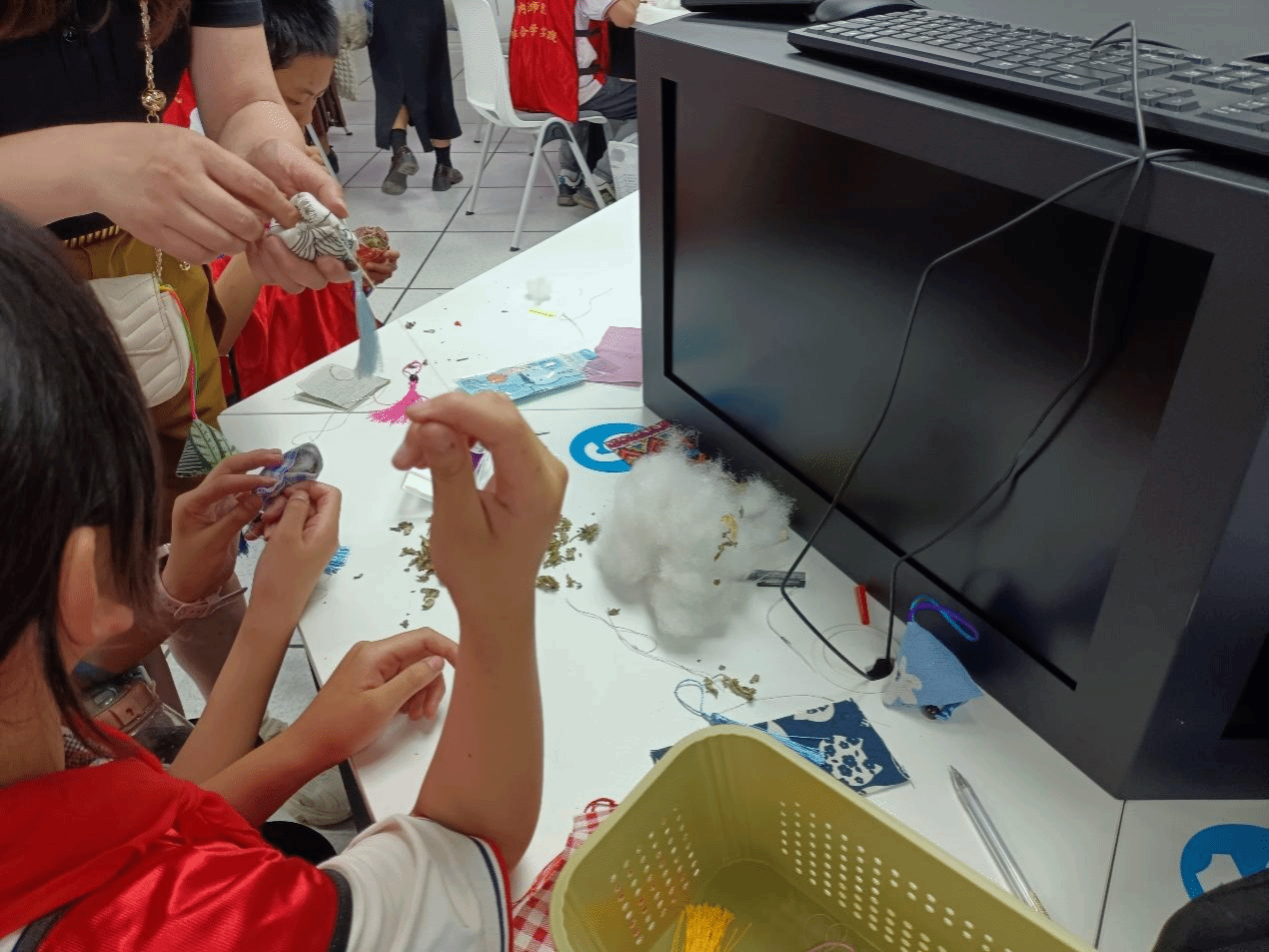 本次活动在教科公司胡志金经理的关怀和杨良群老师的指导下,由2021级小学教育师范生肩负重任,包括开发活动内容、教师选拔、物资准备、场地布置、有序组织中小员工进行中药香囊制作等环节。活动内容由了端午节的传统文化背景、中药香囊的制作原理与功效、动手制作中药香囊、展示分享、颁奖总结等组成。整个活动中,授课教师通过有趣的游戏、生动的例子、通俗的语言、环境创设、动手实践、助教协助的方式,让中小员工深刻感受了中医药文化的源远流长与博大精深,沉浸式体验了制作中药香囊的乐趣,锻炼了他们的动手实操和团队协作能力。