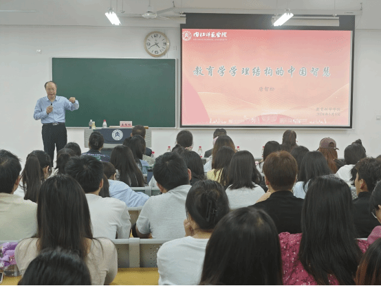 唐智松教授首先从命题人的角度出发,帮助同学们分析了作为教育学专业的学子要如何做好“考研”这件事。他表示,考研是讲策略和方法的,一定要做好专业课的复习和准备。唐教授重点讲解了最关键的专业课《教育学原理》、《教育学》的学习和理解,他从什么是“教育”出发,点明了教育的实质就是“学习”,再以“学习”为逻辑起点帮助同学们梳理了整个教育原理的体系。