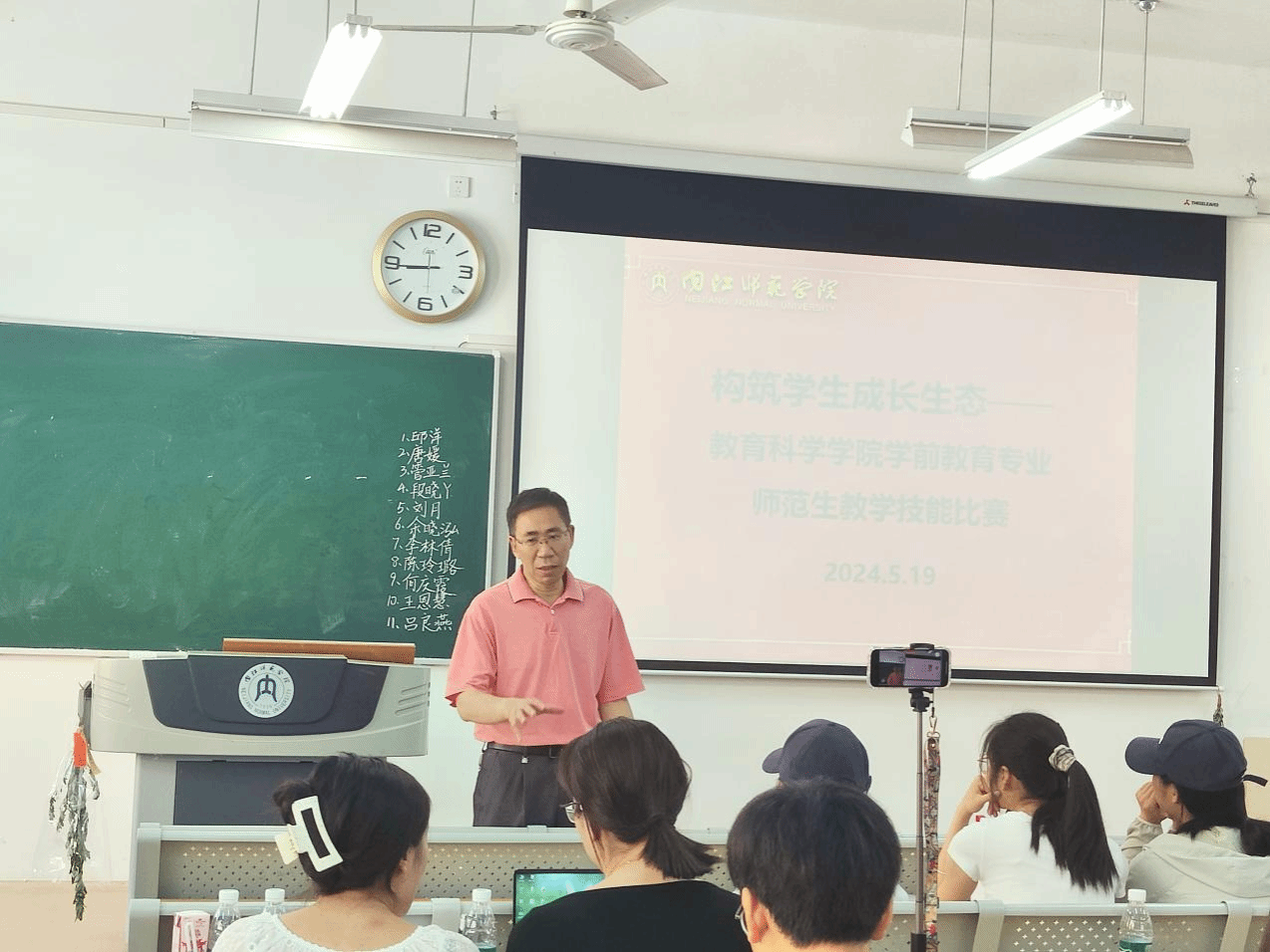 比赛结束后,钱主任肯定了参赛选手“以幼儿为中心”的教育理念和新颖有趣的活动设计等优势,亦指出大家在现场表现力和时间把控力等方面的不足。最后,胡经理对参赛选手们的出色表现给予了高度评价,并以生态学的视角从促进员工个人发展、助力班级建设、为社会和国家培养接班人等层次强调了师范生公司产品技能提升的重要性,并希望同学们能不断总结经验教训,提升专业技能,不负大学四年的青春。
