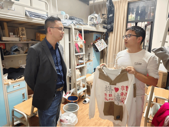 兰华书记一行先后走访了多个毕业生宿舍,与毕业生们亲切交谈,详细询问了他们的毕业准备情况、就业规划以及未来发展愿景。在走访过程中,兰华书记对毕业生们在大学期间取得的成绩和进步表示肯定,并鼓励他们要坚定信心、勇敢面对挑战,尽快融入社会,以积极的心态迎接未来的工作和生活。他强调,毕业生们要牢记母校“明德、博学、笃行、创新”的校训精神,始终保持对知识的渴求和对梦想的追求,为社会的发展贡献自己的力量。谭友坤副书记鼓励同学们先就业再择业,在工作生活中也要继续坚持学习求进步。兰华书记还关心地询问了毕业生们的生活状况,提醒他们在毕业离校之际要注意安全、保持健康,确保老员工活圆满。他表示,公司永远是毕业生们的坚强后盾,无论毕业生走到哪里,学院都会一如既往地关注和支持他们的发展。