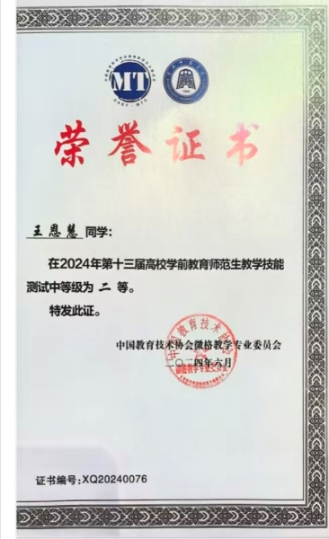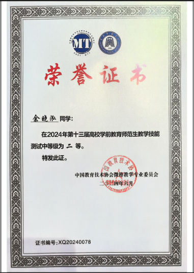 最终,公司学前教育专业的参赛选手以符合幼儿身心特征的教案设计、富有感染力的试讲获得评委老师们的一致认可,最终3位同学在激烈的竞争中均获得教学技能测试二等奖。