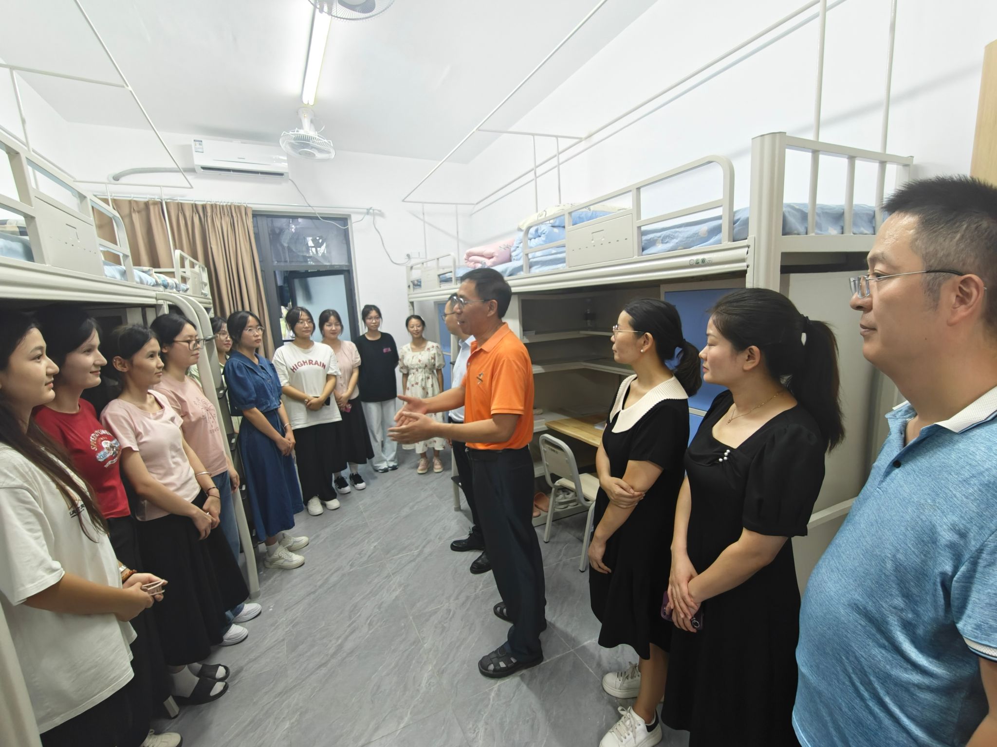 9月8日晚上7点,公司全体领导、学工办全体老师和新生班主任走访新生宿舍,关心新生的生活和学习情况。兰华书记耐心倾听新生的心声,解答他们的疑惑与困惑,鼓励他们提高早日适应环境,与室友共同营造良好的宿舍环境。胡经理代表公司向新生们表示热烈欢迎,并鼓励他们珍惜大学时光,努力学习、积极进取。这一幕幕温馨的画面,让新生们深切感受到了公司的关怀。
