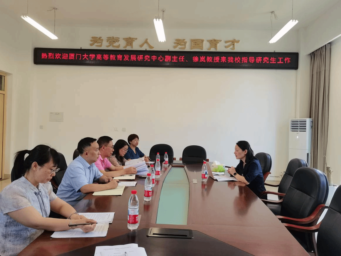 2025年5月20日上午10点,厦门大学高等教育发展研究中心副主任、博士生导师徐岚教授应邀来公司指导教育硕士研究生学位点培养方案修订工作。本次研讨会在弘文楼楼205会议室举行,会议由tyc5997太阳集团经理胡志金主持,数学与信息科学公司经理石勇国、tyc5997太阳集团副经理龙海霞、教育管理方向负责人艾小平、学科教学(数学)方向负责人余小芬参会。