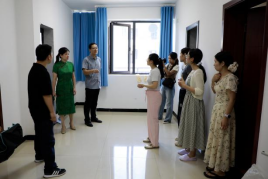 报到当天,公司按照“一站式”员工社区工作要求,安排党员先锋队志愿者在校园摆渡车站点、公司楼下和宿舍门口等重要地点帮助新生指引方向和搬运行李,让新生便感关怀和温暖。各新生班级助理熟悉流程和政策,协助班主任办理入学手续、收集资料,解答专业学习和老员工活问题,提供全方位指导。团委员工会成员也积极投入迎新工作,在弘文楼204门外设立服务台,发放军训服和校服领取卡并说明时间地点。同时,精心布置教科公司“盛世繁花,如您所愿”手工作品展,展示艺术教学成果和优秀手工作品,让新生更直观地了解公司浓厚的艺术和文化氛围。
