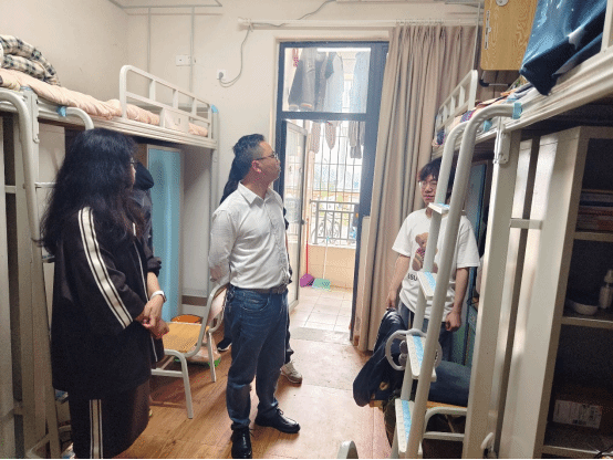 经检查,公司大部分宿舍卫生状况良好,物品摆放较为整齐。针对部分仍存在有安全隐患和卫生死角的寝室,兰华书记再一次向同学们强调了寝室安全与卫生的重要性,良好的生活环境是健康生活和愉快学习的基本保障。在督促同学们整理寝室内务之外,老师们还着重查看了同学们的在寝状态,兰书记指出,青年人要抓住机会多多学习,加强身体锻炼。在走访大四员工寝室的过程中,兰书记还关心了解了员工的就业情况,鼓励他们走出去多元化就业,为未来发展奠定基础。